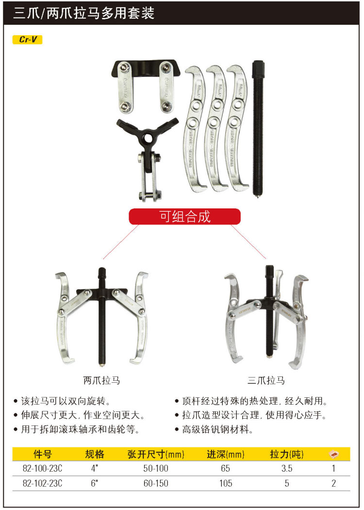 三爪/两爪拉马多用套装4″;82-100-23C