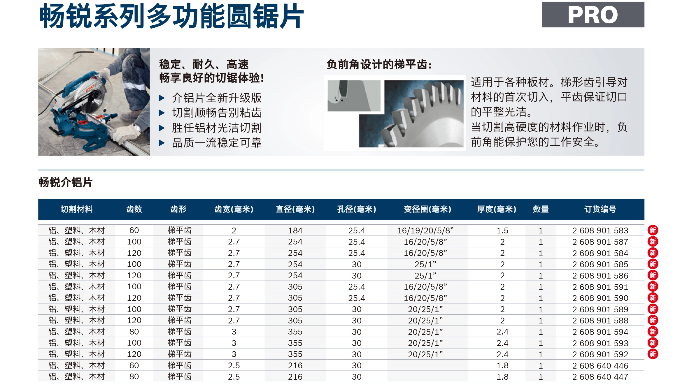 专业级 多功能圆锯片 184×2.0/1.5×25.4mm, T60;2608901583