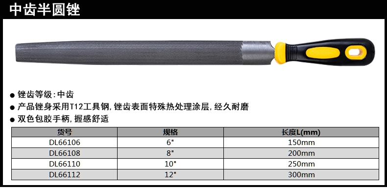 成为第一个“中齿半圆锉6寸(黄)(把);DL66106” 的评价者