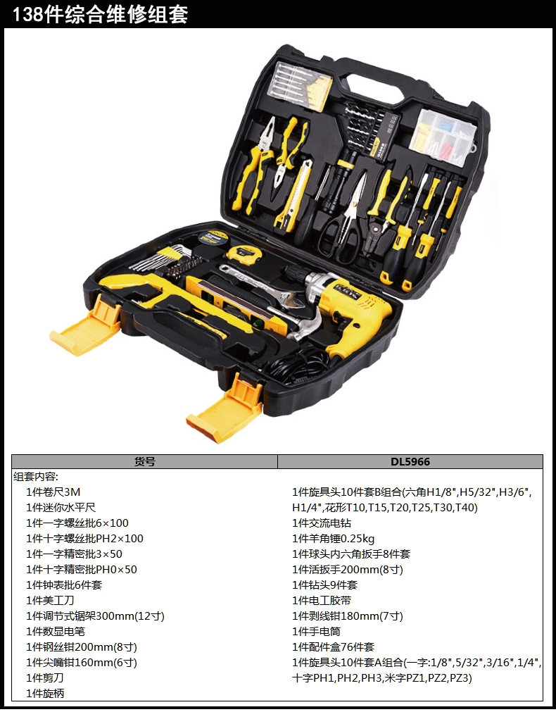 成为第一个“冲击钻综合维修套装65件套(黑)(套);DL5966” 的评价者
