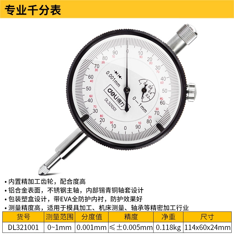 千分表0-1mm专业(银)(把);DL321001