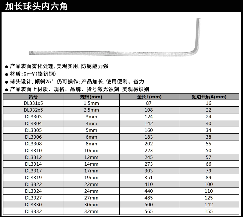 单只特长球头内六角1.5MM(银)(支);DL331X5