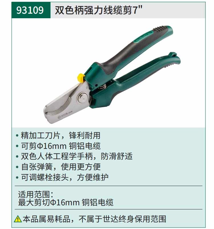 双色柄强力线缆剪7″ ; 93109