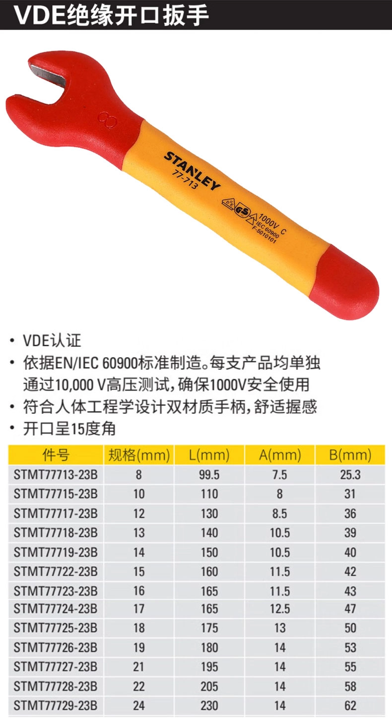 双色绝缘开口扳手8mm;STMT77713-23B