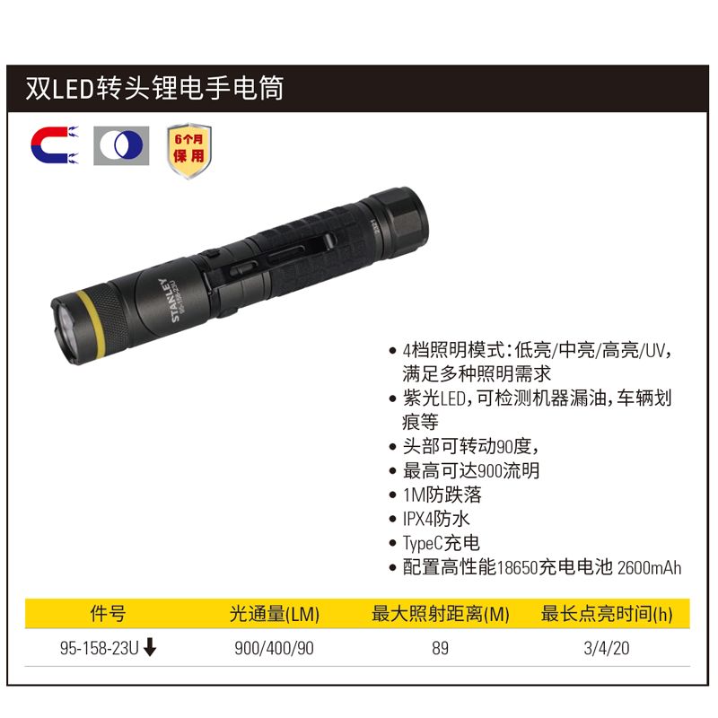 双LED转头锂电手电筒;95-158-23U