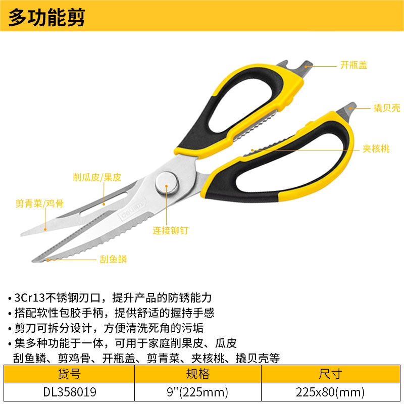 多功能剪刀9寸(黄)(把);DL358019