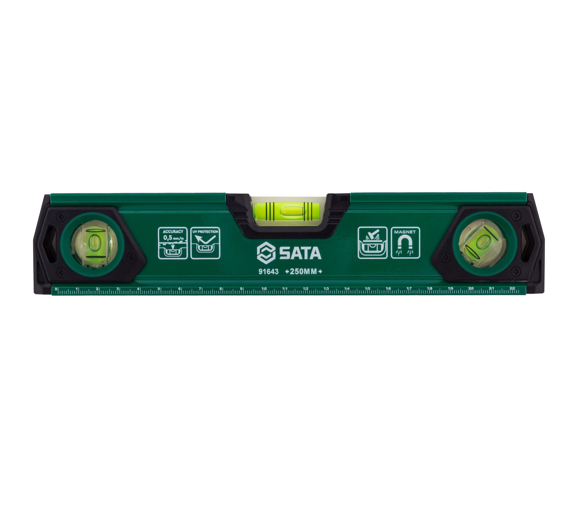 ● 带磁性,方便操作 ● 误差在 0.5MM/M 以内,测量精准 ● 水平泡抗UV功能,防紫外线 ● 水平泡抗冲击,不易破裂 ● 加厚型材,软塑端盖,抗跌落性能好 ● 尺体带刻度,可辅助测量