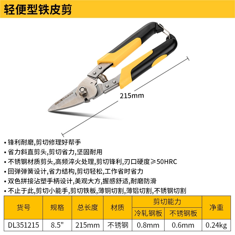 弯头龙骨剪8.5寸(黄)(把);DL351215