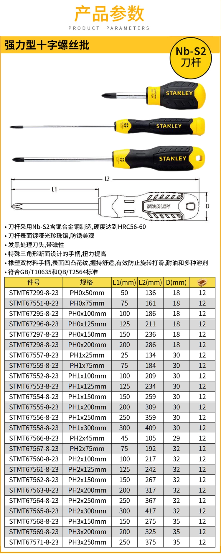 强力型十字螺丝批PH0x50mm;STMT67299-8-23