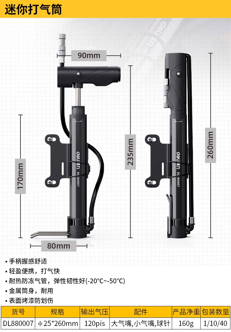 打气筒Φ25x260mm骑行式(黑)(个)(售完取消);DL880007