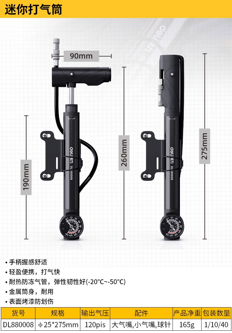 打气筒Φ25x275mm骑行式带表(黑)(个)(售完取消);DL880008