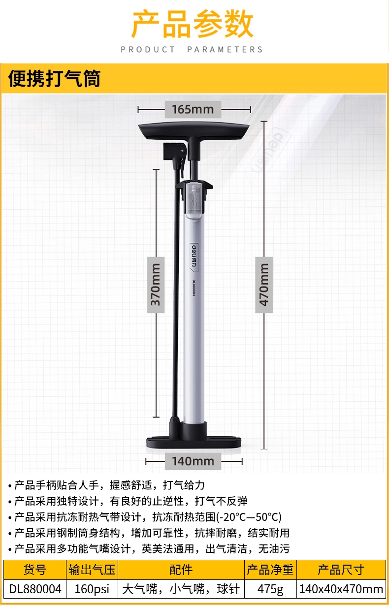 打气筒Φ32x360mm单增压(银)(个);DL880004