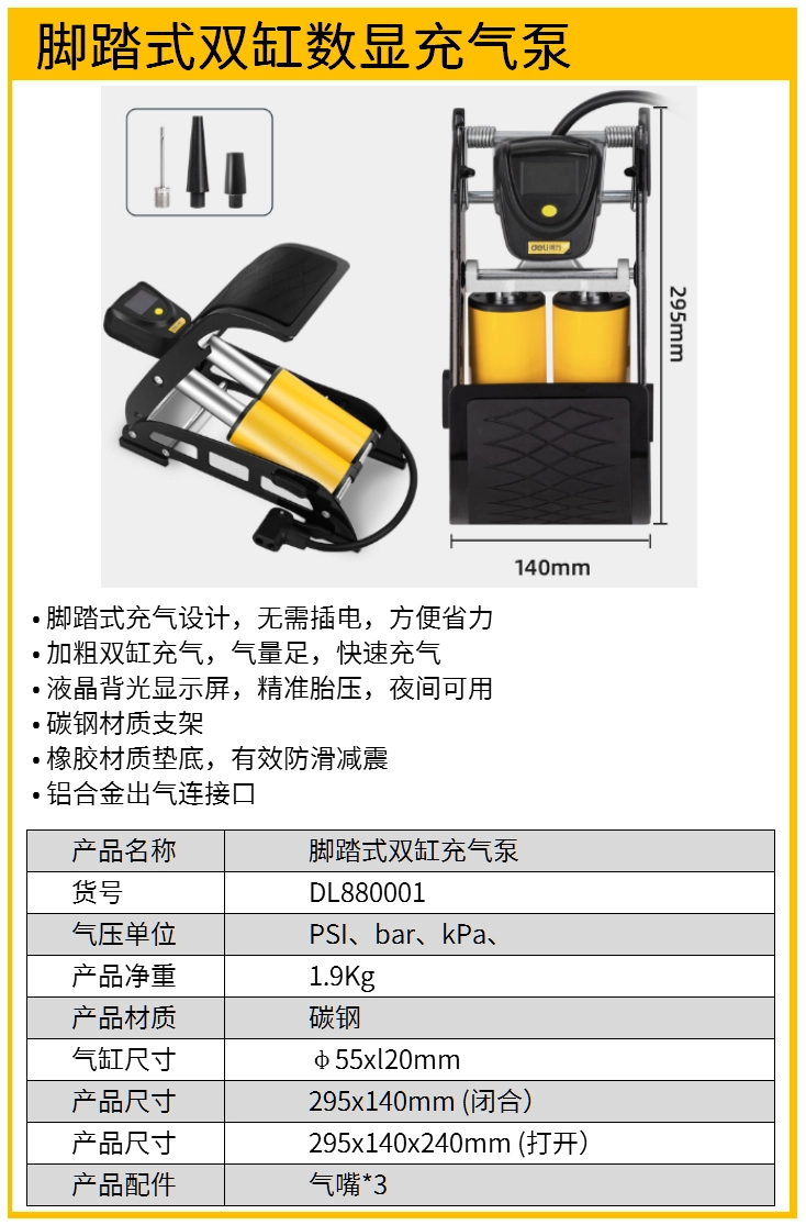 打气筒φ55x120mm脚踏式双缸(黄)(台)(售完取消);DL880001