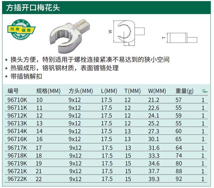 扭力扳手开口梅花头9x12x10MM ; 96710K