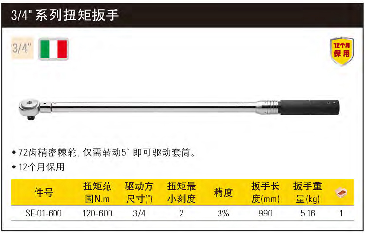 成为第一个“扭矩扳手120-600N.m;SE-01-600” 的评价者
