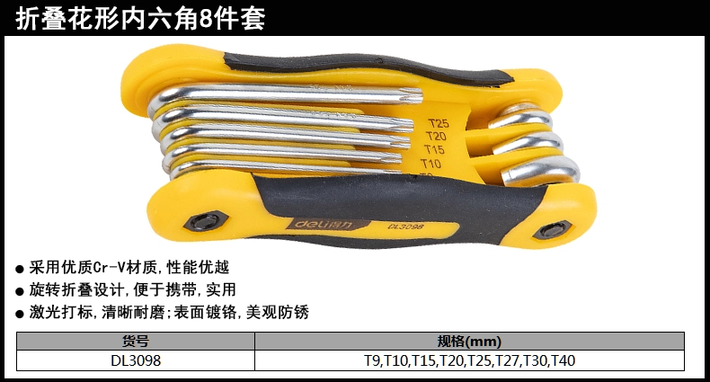 折叠花型内六角组套8件套包胶款(银)(套);DL3098