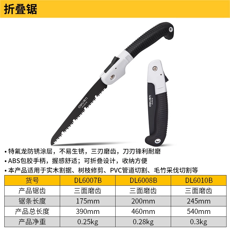 折叠锯7寸65Mn发黑退屑槽(黑)(把);DL6007B