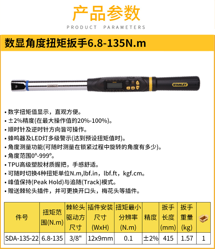 数显角度扭矩扳手6.8-135N.m;SDA-135-22