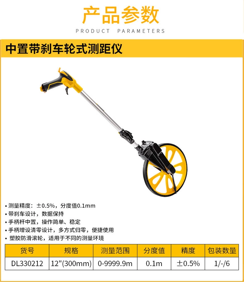 机械轮式测距仪300mm带刹(黄)(台)(售完取消);DL330212