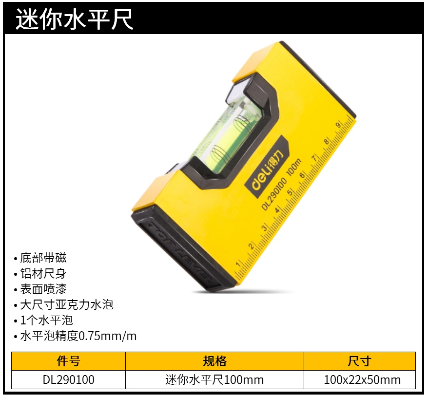 水平尺100mm迷你(黄)(把);DL290100