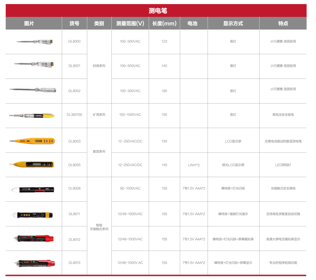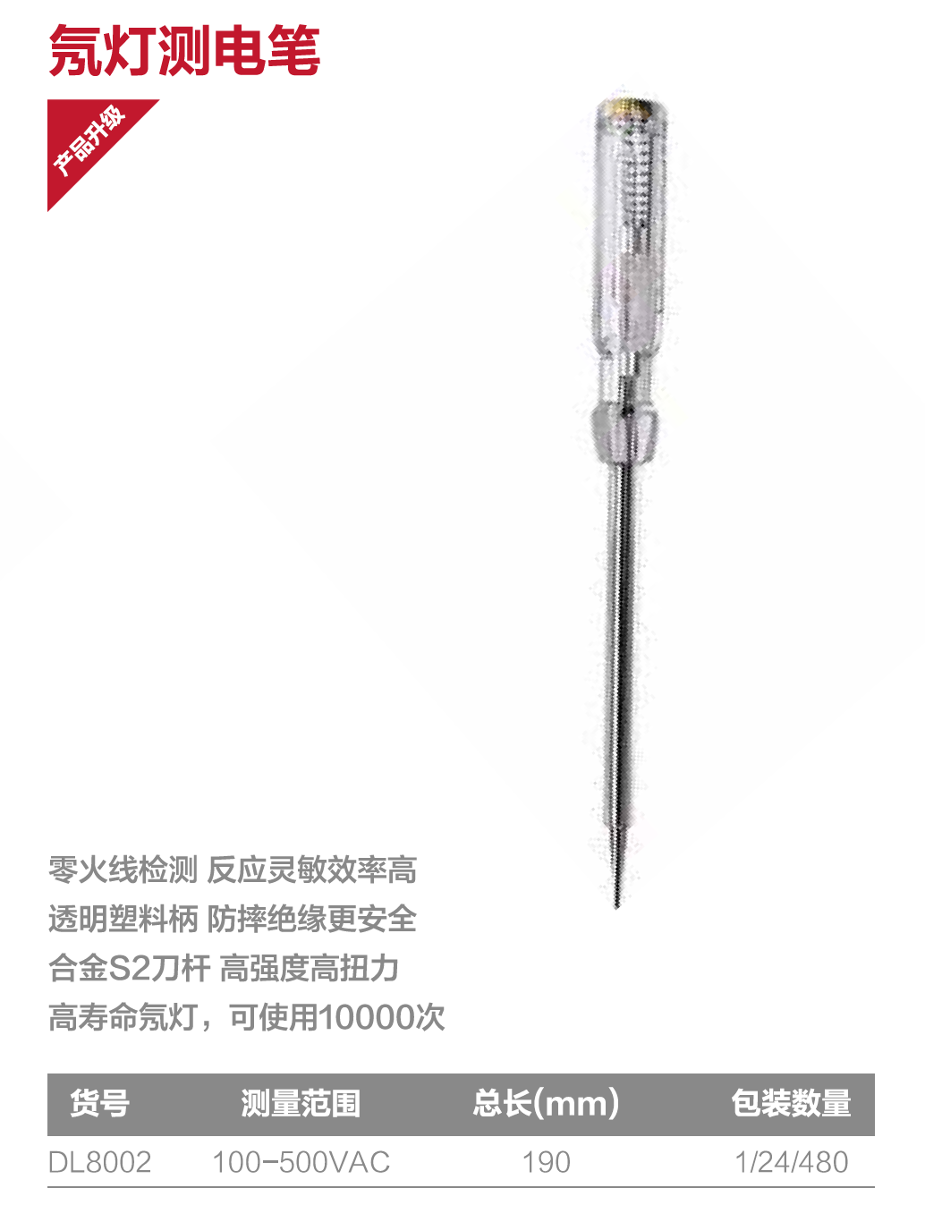 测电笔100-500V氖灯190mm(透明)(支);DL8002