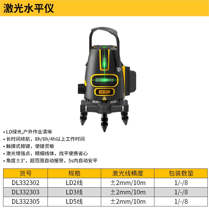 激光水平仪LD2线塑盒单电(黄)(台);DL332302