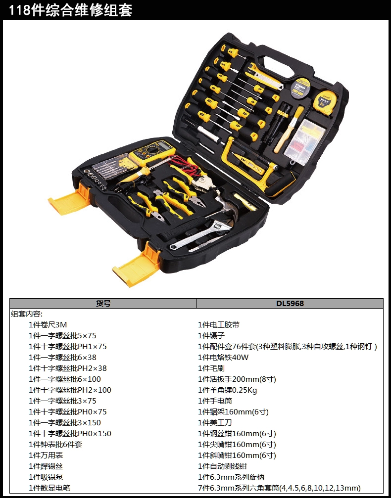 成为第一个“电讯综合维修套装43件套(黑)(套);DL5968” 的评价者