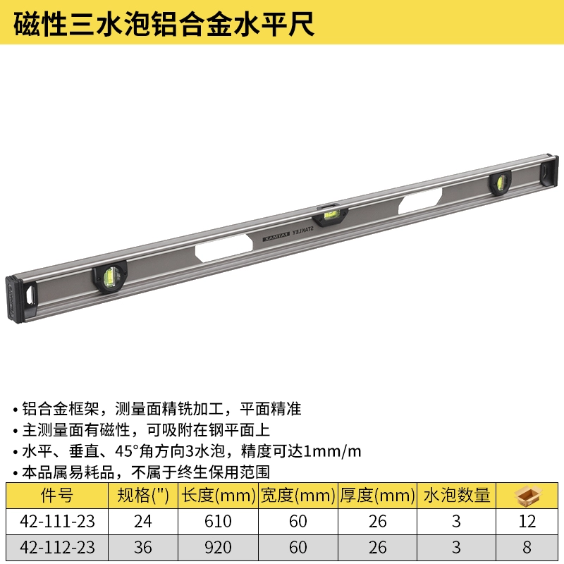 成为第一个“磁性三水泡铝合金水平尺24″;42-111-23” 的评价者
