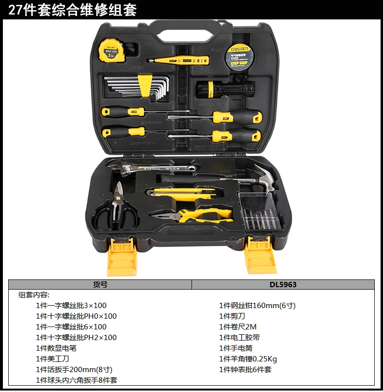 成为第一个“综合维修套装27件套(黑)(套);DL5963” 的评价者