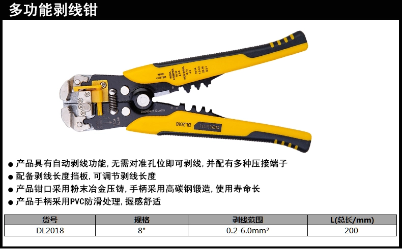 自动剥线钳0.2-6.0mm2带压接(黑)(把);DL2018