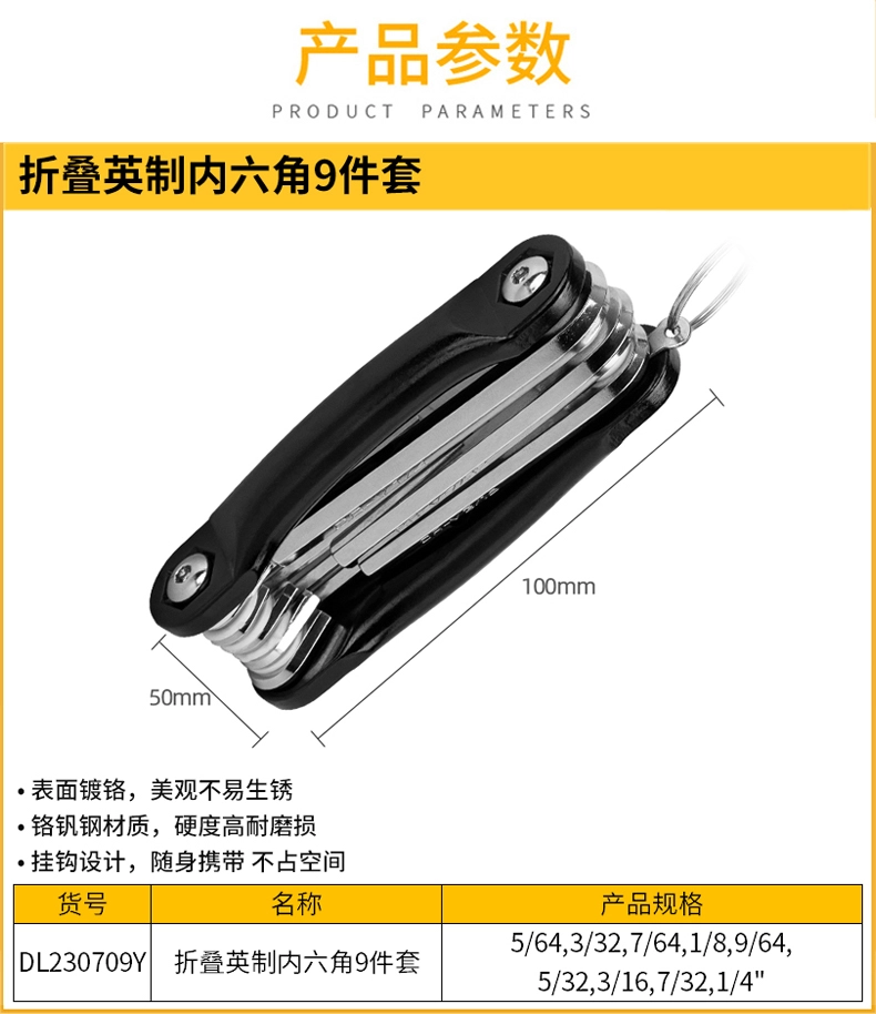 英制折叠平头内六角组套9件套铝合金架(银)(套);DL230709Y
