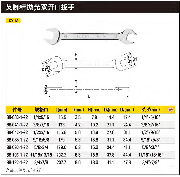 成为第一个“英制精抛光双开口扳手1/4″x5/16″;88-000-1-22” 的评价者