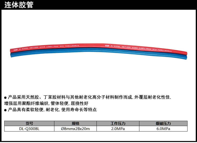 连体胶管8mmx2Bx20m(红蓝)(卷);DL-Q3008L