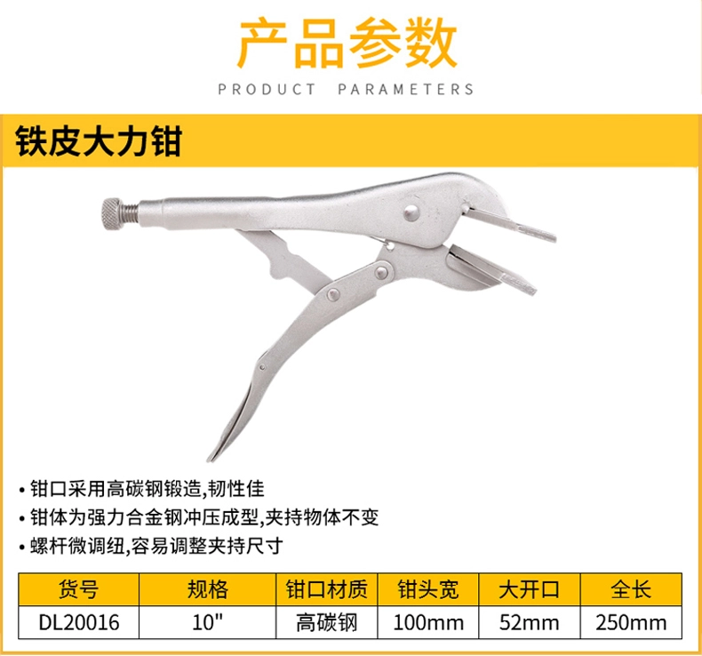 铁皮大力钳10寸(银)(把);DL20016