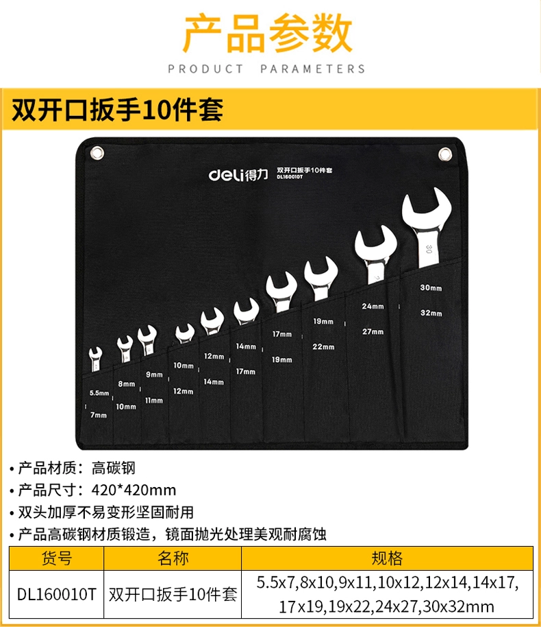 镜面双开口扳手套装10件套(银)(套);DL160010T