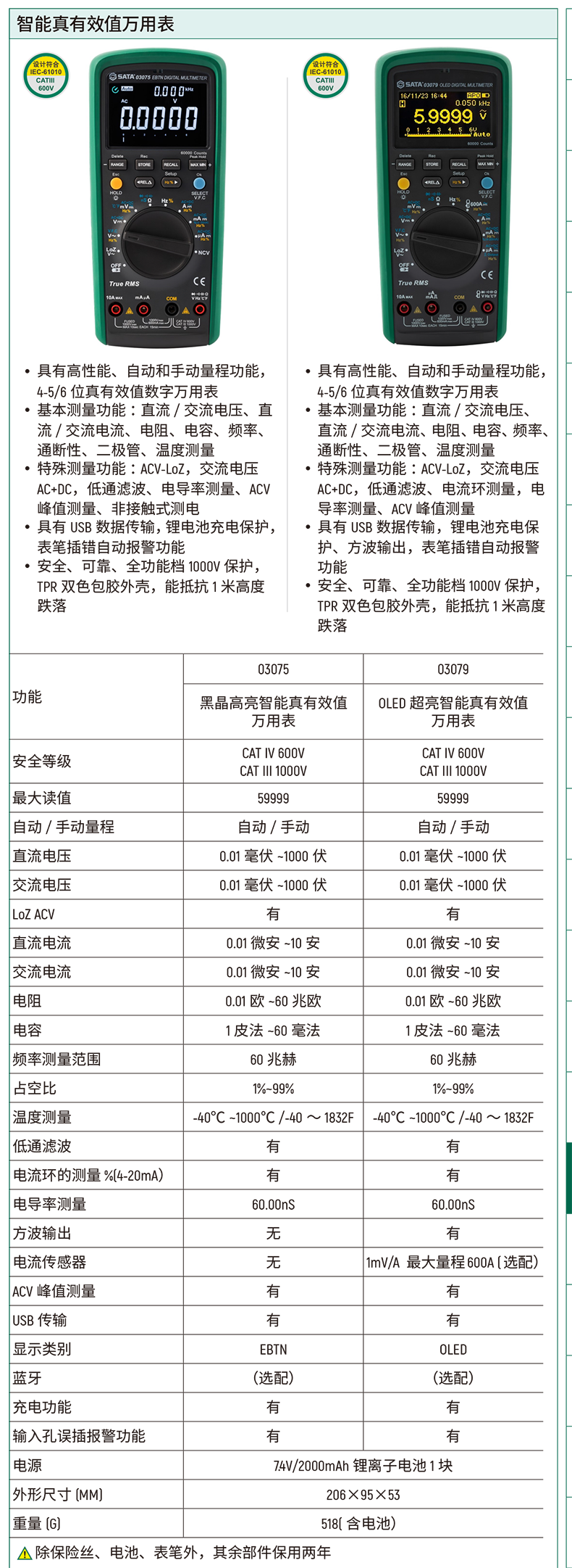 ●安全、可靠、全功能档1000V保护,TPR双色包胶外壳,能抵抗1米高度跌落