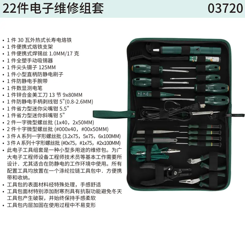 促销中 Previous Product Next Product 22件电子维修组套 ; 03720 ¥529.00 原价为:¥529.00。¥529.00当前价格为:¥529.00。 22件电子维修组套 ; 03720 数量 加入购物车 SKU: 03720 分类: 世达五金 品牌: SATA/世达 其他信息 用户评价 (0) 其他信息 重量 1.55 公斤 评价 目前还没有评价 成为第一个“22件电子维修组套 ; 03720” 的评价者 取消回复您必须登录才能发表评价。 相关产品 快速查看 促销中 快速查看 世达五金9件特长球头内六角扳手组套 ; 09101 ¥122.00 原价为:¥122.00。¥122.00当前价格为:¥122.00。 加入购物车 9件特长球头内六角扳手组套 ; 09101 ● 规格:1.5,2,2.5,3,4,5,6,8,10MM ● 球头功能端可倾斜使用 ● 内六角插取更方便,不易脱落 ● 增加充退磁功能 ● 扳手采用全抛光表面镀铬技术 ● SVCM+ 材质耐磨性更佳,能承受更大扭力 SKU: 09101 分类: 世达五金 品牌: SATA/世达 ¥122.00 原价为:¥122.00。¥122.00当前价格为:¥122.00。 快速查看 促销中 快速查看 世达五金5件套无铅烙铁头I型(尖头形) ; 02022 ¥106.00 原价为:¥106.00。¥106.00当前价格为:¥106.00。 加入购物车 5件套无铅烙铁头I型(尖头形) ; 02022 SKU: 02022 分类: 世达五金 品牌: SATA/世达 ¥106.00 原价为:¥106.00。¥106.00当前价格为:¥106.00。 快速查看 促销中 快速查看 世达五金5件套无铅烙铁头3.2D型(一字形) ; 02026 ¥106.00 原价为:¥106.00。¥106.00当前价格为:¥106.00。 加入购物车 5件套无铅烙铁头3.2D型(一字形) ; 02026 SKU: 02026 分类: 世达五金 品牌: SATA/世达 ¥106.00 原价为:¥106.00。¥106.00当前价格为:¥106.00。