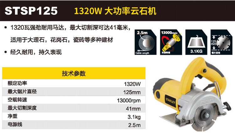 成为第一个“1320W 125mm 石材切割机;STSP125-A9” 的评价者