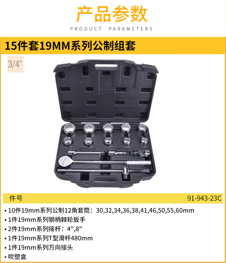 成为第一个“15件19MM系列公制组套;91-943-23C” 的评价者