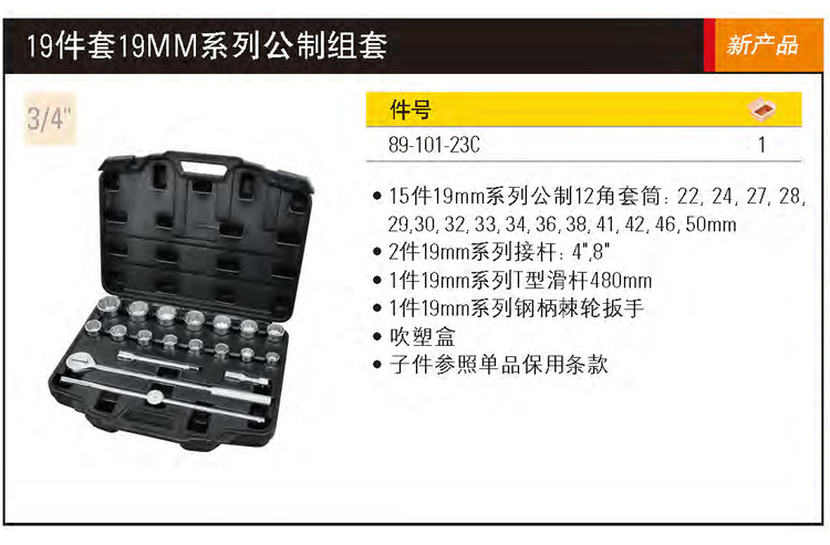 成为第一个“19件套19MM系列公制组套;89-101-23C” 的评价者
