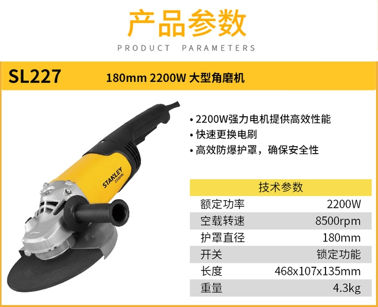 成为第一个“2200W 180mm 角磨机[已停产];SL227-A9” 的评价者