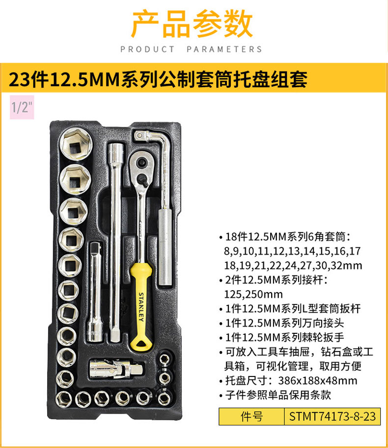 23件12.5MM系列公制套筒托盘组套;STMT74173-8-23