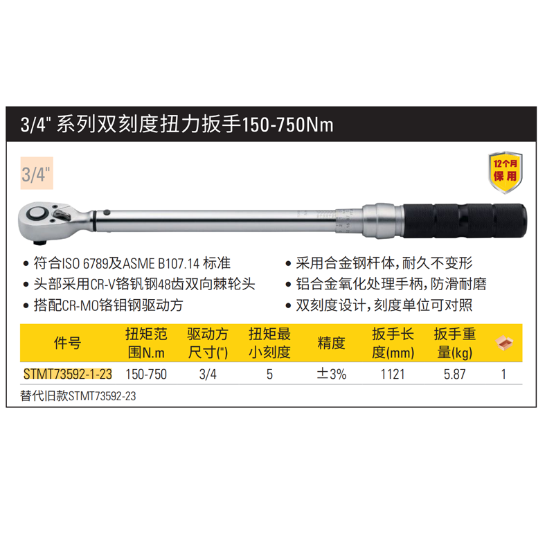 3/4″ 系列双刻度扭力扳手150-750Nm/111-553.5 lbf-ft 3% AC;STMT73592-1-23
