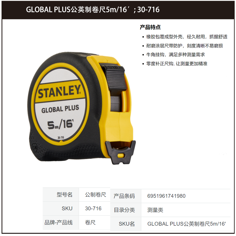 成为第一个“GLOBAL PLUS公英制卷尺3m/10′; 30-710” 的评价者