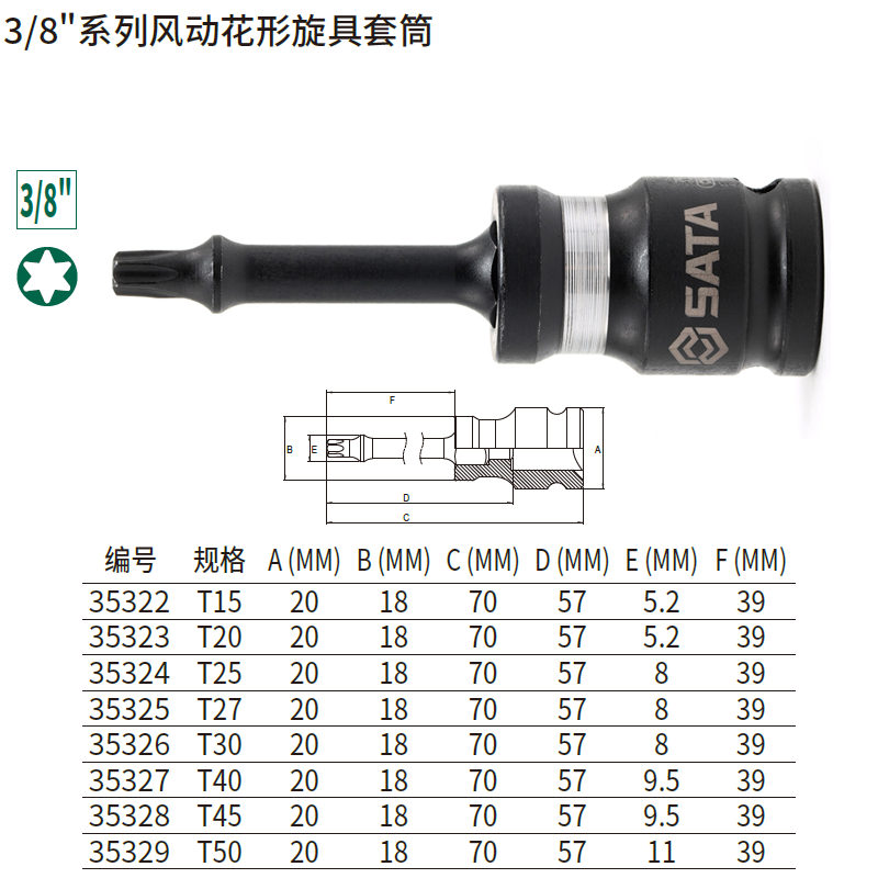 3/8″系列风动花形旋具套筒T27 ; 35325