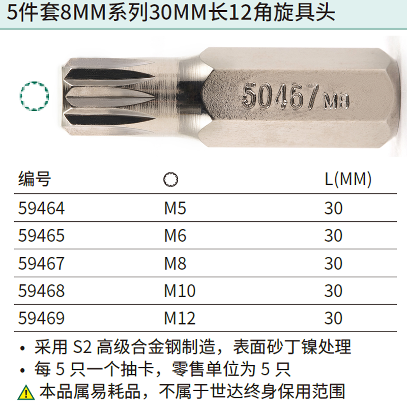 5件套8MM系列30MM长12角旋具头M6 ; 59465