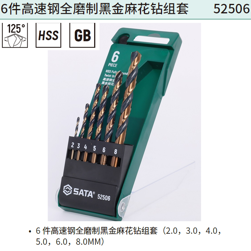 6件高速钢全磨制黑金麻花钻组套 ; 52506