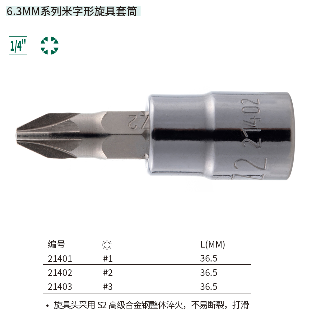 6.3MM系列米字形旋具套筒#2 ; 21402