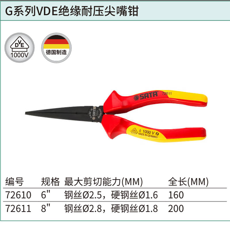 促销中 Previous Product Next Product G系列VDE绝缘耐压尖嘴钳6″ ; 72610 ¥269.00 原价为:¥269.00。¥269.00当前价格为:¥269.00。 G系列VDE绝缘耐压尖嘴钳6" ; 72610 数量 加入购物车 SKU: 72610 分类: 世达五金 品牌: SATA/世达 其他信息 用户评价 (0) 其他信息 重量 0.16 公斤 评价 目前还没有评价 成为第一个“G系列VDE绝缘耐压尖嘴钳6″ ; 72610” 的评价者 取消回复您必须登录才能发表评价。 相关产品 快速查看 促销中 快速查看 世达五金1/2″专业级复合材料气动冲击扳手 ; 02136 ¥1,649.00 原价为:¥1,649.00。¥1,649.00当前价格为:¥1,649.00。 加入购物车 1/2″专业级复合材料气动冲击扳手 ; 02136 产品介绍 ● 输出轴采用日本进口SNCM616钢材锻造而成 ● 自复位叶片设计,让叶片始终贴合气缸内表面,启动更迅速,爆发力更强 ● 全系配备360度旋转进气总成,不再受绕管之苦 SKU: 02136 分类: 世达五金 品牌: SATA/世达 ¥1,649.00 原价为:¥1,649.00。¥1,649.00当前价格为:¥1,649.00。 快速查看 促销中 快速查看 世达五金3/8″专业级复合材料气动冲击扳手 ; 02124 ¥1,559.00 原价为:¥1,559.00。¥1,559.00当前价格为:¥1,559.00。 加入购物车 3/8″专业级复合材料气动冲击扳手 ; 02124 SKU: 02124 分类: 世达五金 品牌: SATA/世达 ¥1,559.00 原价为:¥1,559.00。¥1,559.00当前价格为:¥1,559.00。 快速查看 促销中 快速查看 世达五金5件套无铅烙铁头1.6D型(一字形) ; 02024 ¥106.00 原价为:¥106.00。¥106.00当前价格为:¥106.00。 加入购物车 5件套无铅烙铁头1.6D型(一字形) ; 02024 SKU: 02024 分类: 世达五金 品牌: SATA/世达 ¥106.00 原价为:¥106.00。¥106.00当前价格为:¥106.00。