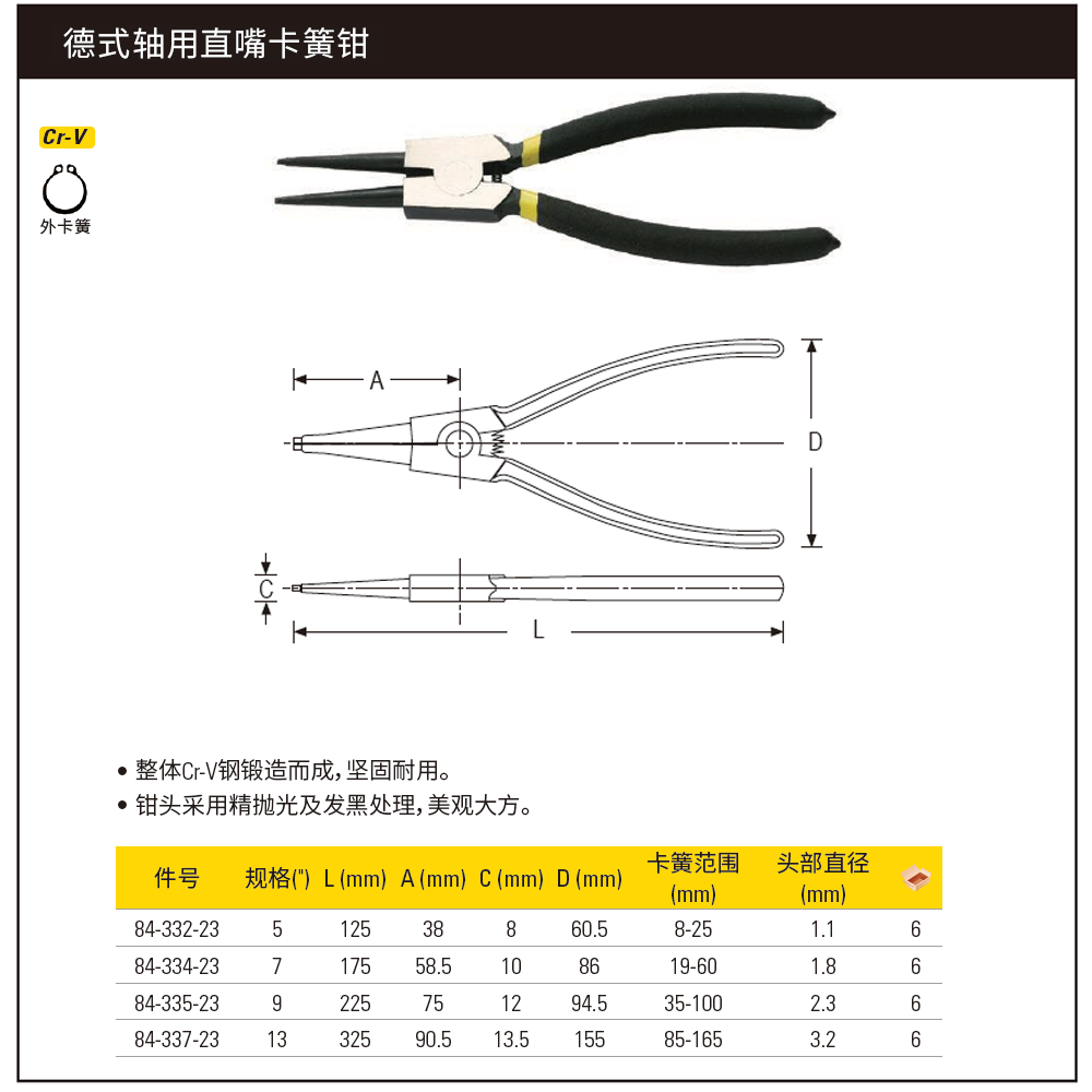成为第一个“德式轴用直嘴卡簧钳9″;84-335-23” 的评价者